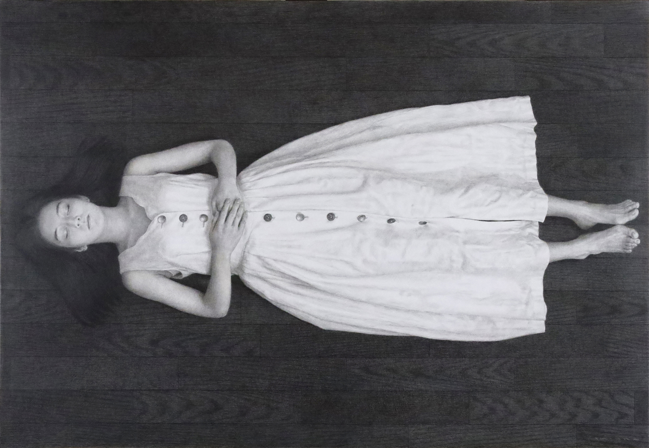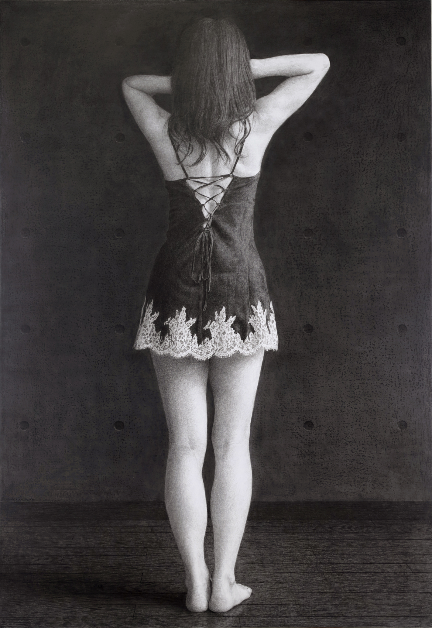 パネルに銀筆、墨、黒鉛